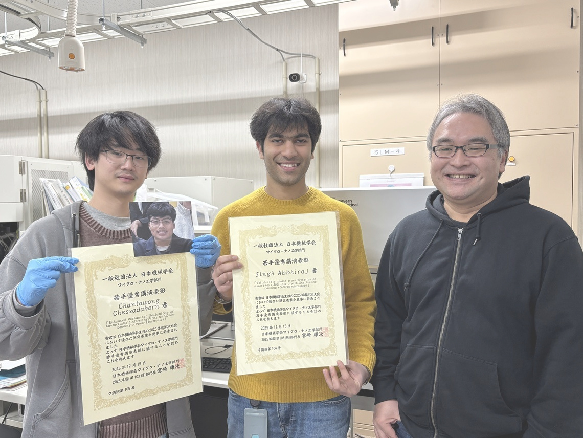 HOME LAB MEMBER RESEARCH ACTIVITY PROFESSOR CONTACT EVENT LANGUAGE EVENT EVENT 2026/01/30JSME Outstanding Presentation Award for Young Researchers. 2025/12/20Meeting with Miyake Lab, Setsunan University 2025/12/19SEMICON JAPAN 2025@Tokyo Big Sight 2025/12/18Keynote Address at MMCET 2025, Tokyo 2025/12/13Kyushu Branch Meeting of the Microscopy Society of Japan 2025 2025/11/20Participation and Presentation of MNC 2025 2025/11/19Night view of Ryogoku, Tokyo 2025/11/18Participation and Presentation of MNC 2025 2025/11/10Best Presentation Award at the 2025 JSPE Autumn Meeting 2025/10/01Professor at International Center for Synchrotron Radiation Innovation Smart, Tohoku University 2025/10/19Okinawa Ocean and Sunset(Taken by Prof. Namazu) 2025/10/8The Hill of Mild Seven and the Dragonfly(Taken by Prof. Namazu) 2025/9/172025 JSEM Annual Conference on Experimental Mechanics 2025/9/102024 FY Autumn Graduation Ceremony 2025/9/9Invited Lecture at Higashikawa Japanese Language School 2025/09/08Participating and presenting at the JSME Annual Conference 2025 2025/09/02Farewell Party for International Graduate Students 2025/08/16Kyoto Gozan Fire Festival (Daimonji Bonfire), as Seen from KUAS 2025/09/07Heading to Hokkaido University for work 2025/08/06Giving a Keynote Speech and Participation in the ICEIM 2025, with Prof. Horii (Right Side) 2025/06/11Participation and Presentation at the 81st Annual Meeting of the Japanese Society of Microscopy 2025/05/16Joined as Associaste Professor: Amit BANERJEE 2025/05/16Prof. Shozo Inoue's retirement celebration 2025/05/12Selected as MRS Adavance cover art 2025/01/15Featured in a magazine "Hankei 500M" 2024/12/21Meeting with the Miyake laboratory of the Setsunan University 2024/11/05Fukuda-kun, Student award of ISSP2024 2024/10/24The 2nd Nanoelastronics workshop in Okinawa